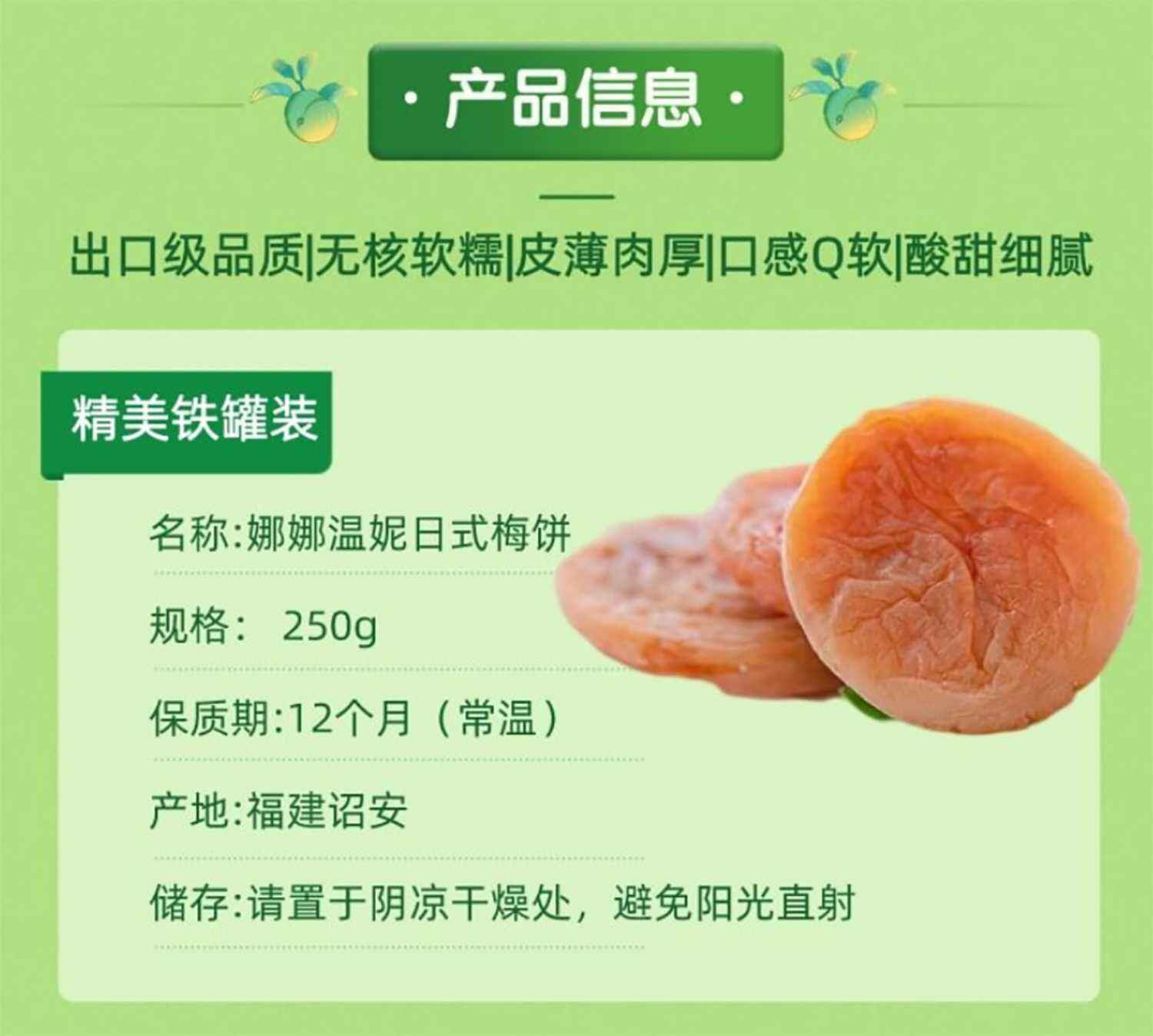 商品名称:娜娜温妮日式梅饼精美铁罐装无核软糯皮薄肉厚